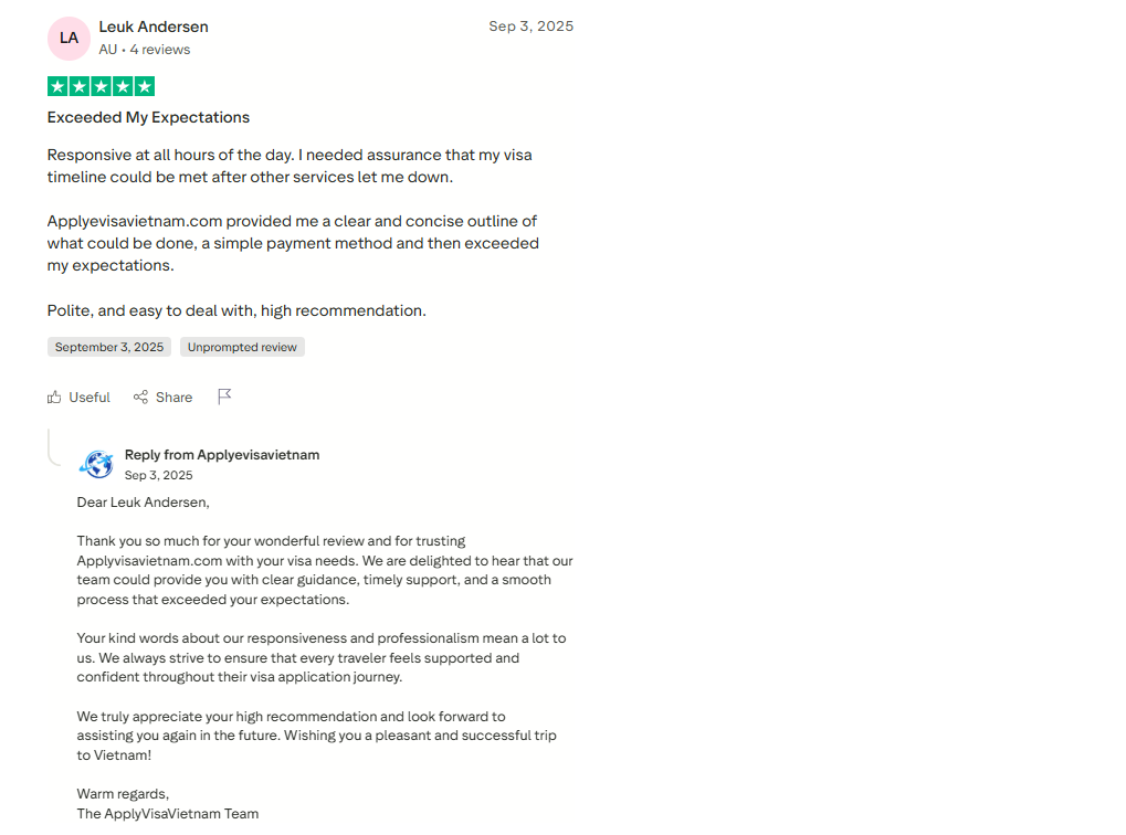 ⭐ Trustpilot – ApplyEVisaVietnam Reviews
